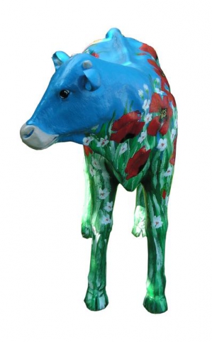 Lebensgrosses Kalb aus GFK mit rotem Klatschmohn